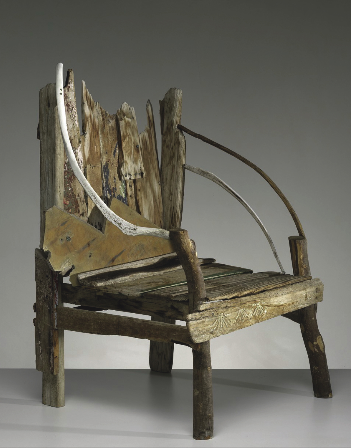 This chair reflects Gay’s lifelong love of the seaside and her narrative approach to working with timber and found materials.